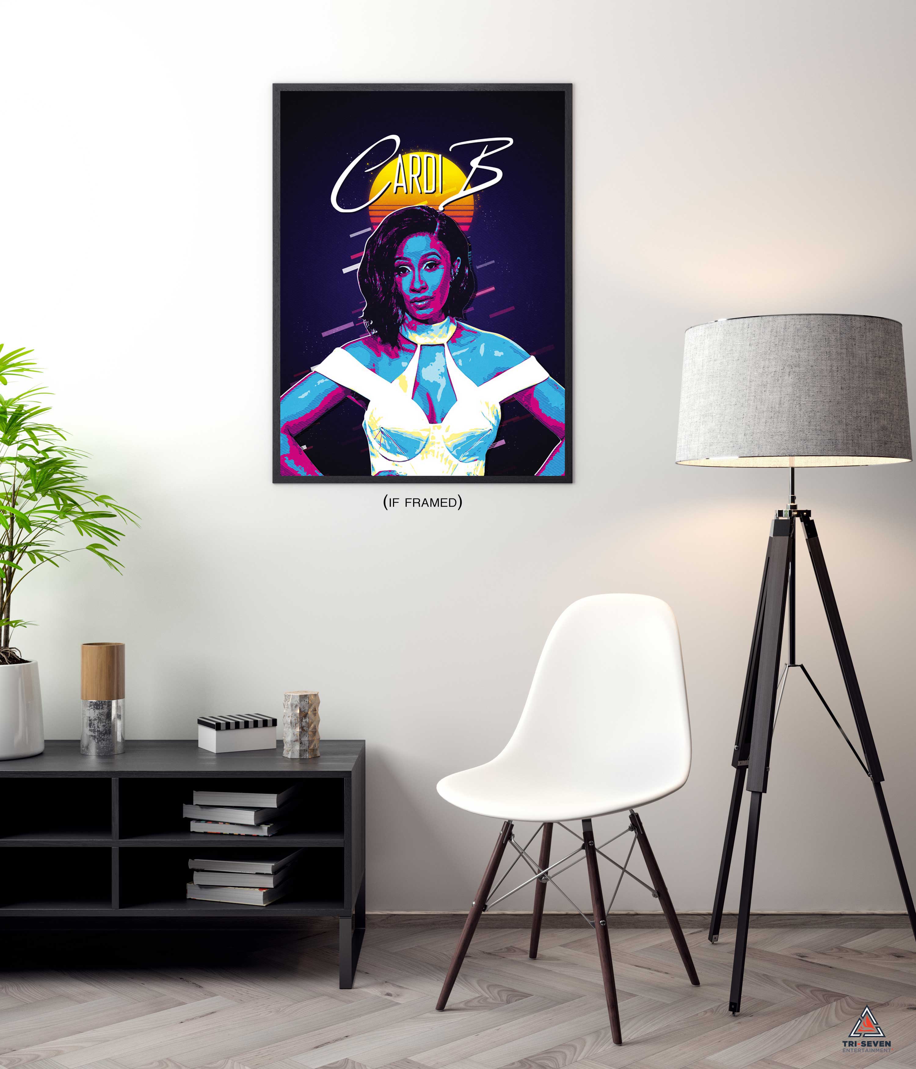 Tri-Seven Entertainment's unique and one-of-a-kind poster of rapper Cardi B. Since signing with Atlantic Records in 2017, Cardi B has earned two number-one singles on the US Billboard Hot 100 with "Bodak Yellow" and "I Like It". Great for Cardi B fans, collectors, gift, framing, home, office, etc. Size: 18"x24" (glossy poster paper). Delivery: Unframed. Comes in a mailing tube.