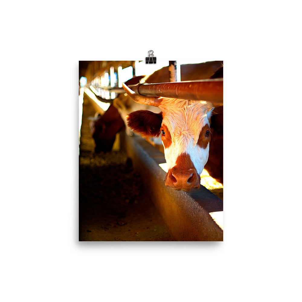 Tri-Seven Entertainment's beautiful country photo of a curious cow on a farm. This unframed poster wall art is available in a plethora of sizes and delivers a sharp vivid image with a high degree of accuracy. Great for home, office, gift, etc. Title: Curious Cow Museum-quality posters made on thick and durable matte paper. Add a wonderful accent to your room and office with these posters that are sure to brighten any environment. • Paper thickness: 10.3 mil • Paper weight: 5.6 oz/y² (192 g/m²) • Giclée printing quality • Opacity: 94% Ships in 2-5 business days.
