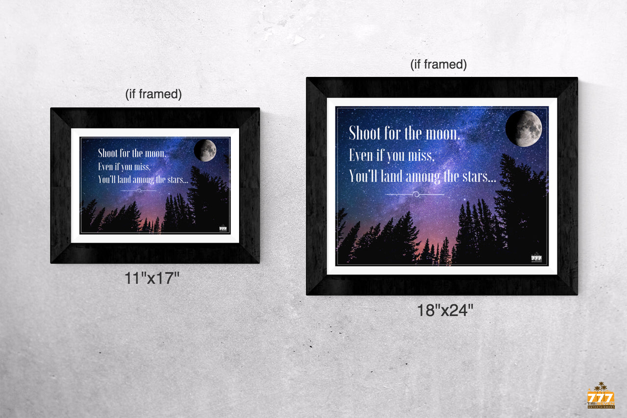 Always give it your all! Never forget, always shoot for the moon because even if you miss, you'll land among the stars. You can make it! You WILL succeed in whatever you endeavor to do if you try your best. Be encouraged with this popular inspirational and motivational poster. Makes a great gift for you, your loved ones, friends, co-workers, colleagues, etc. Available in two poster sizes: 11"x17" and 18"x24" (horizontal). Sizes: 11"x17", 18"x24" (glossy poster paper) Delivery: Unframed. Comes in a mailing tube.